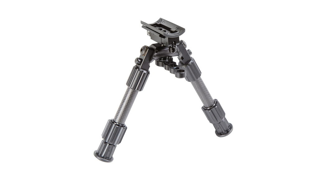 Achieve maximum accuracy with the Caldwell Accumax Carbon Fiber Bipod. The Accumax Premium Carbon Fiber Bipod attaches for easy and secure lock-up. It features quick-deployment carbon fiber legs with 90 degree forward locking method or backward method with spring-loaded buttons. The Premium Carbon Fiber Bipod also features an omni-directional ball mount for 360 degree panning, a lever lock handle for fast adjustments, and of course, twist-lock leg length adjustments.