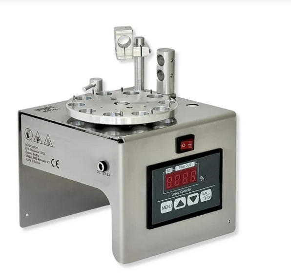 AGS Brass Case Annealer 3.0 – for multiple calibers, with digital PWM controller (adjustable from 2.5 to 10 seconds) and interchangeable inserts, and taller than previous two versions. Three sets of inserts are included – one set is for .223 and alike cases (with .402″ – 10.2 mm opening), one set is for .308 and alike cases (with .492″ – 12.5 mm opening) and one set is for cases with .532 base and alike (with .543″ – 13.8 mm opening). Use without inserts for .338 and alike (.622″ – 15.8 mm opening).