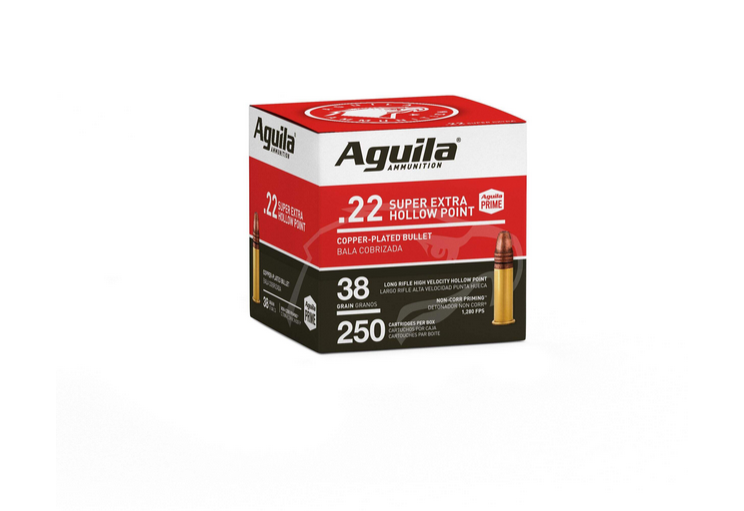 The Aguila 22 38-Grain Super Extra LR Hollow Point Copper-Plated Ammunition is engineered for exceptional performance in both small game hunting and target shooting. The hollow point design ensures reliable expansion upon impact, providing maximum stopping power. The 38-grain weight and copper-plated coating ensure smooth feeding and consistent, accurate shots. Whether you're practicing at the range or going after small game, these rounds deliver consistent accuracy and performance with every shot.