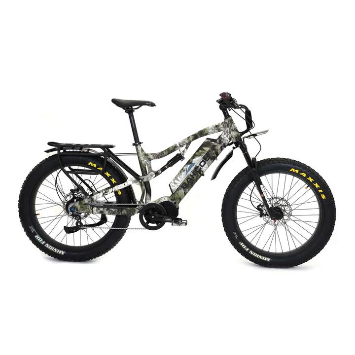 The Bakcou Storm Jager has the #1 selling full-suspension, fat-tire electric bike that's redefining the game. The Rohloff Speed Hub, an undeniably impressive feat of engineering, powers this bike, allowing for high speeds and the ability to climb like a beast with its 14-speed hub system. With the unparalleled power and performance of the Bafangs ULTRA mid-drive motor, the Storm Jager is equipped to handle even the gnarliest, rugged, steep, or technical terrains. The Rockshox Monarch Rear suspension ensures that the frame won't flex under intense loads, and the smart motor technology provides a natural feeling ride. If you're looking for a bike that can handle anything you throw at it, the Bakcou Storm Jager is in a class of its own!