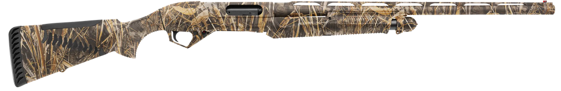 Available in 26- and 28-inch barrel lengths, the SuperNova in Realtree Max-7 can be summed as everything you need and nothing you don't. Chambered in 3 1/2-inch magnum, the shotgun features an enlarged trigger guard (30-percent more finger room) for gloved hands, a forend shell-stop button, and Benelli's ComforTech recoil reduction system, which reduces felt recoil and helps keep the shooter on target when the action is fast.