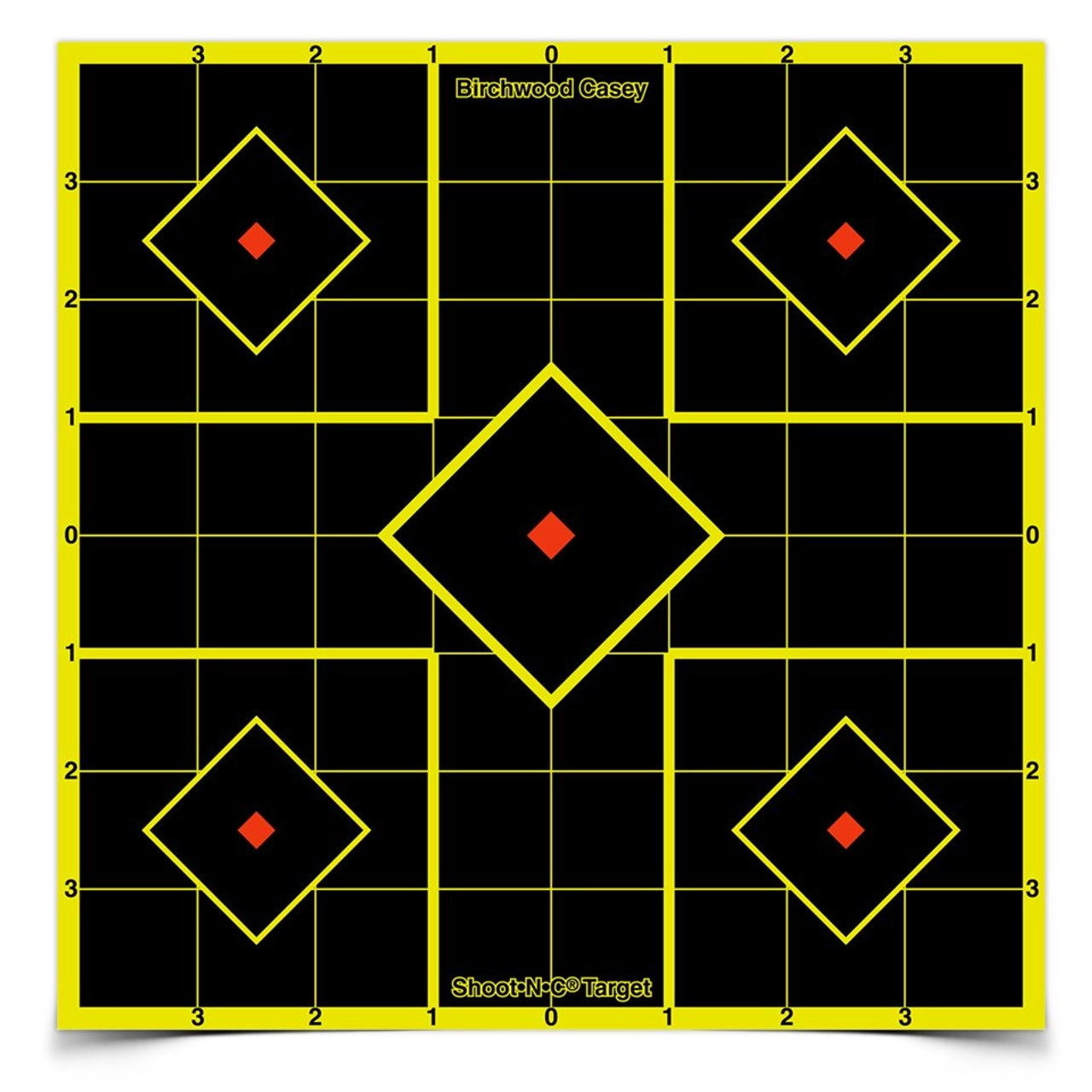 FIVE TARGETS ON EACH SHEET – USE CENTER TARGET FOR SIGHTING-IN AND FOUR SMALLER TARGETS FOR TESTING RESULTS OF VARIOUS BALLISTIC LOADS OR FOR CONFIRMATION OF SIGHT-IN GROUPS. CONVENIENT 1 INCH NUMBERED GRID LINES SIMPLIFY SCOPE ADJUSTMENTS.