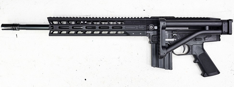 The Makasi marries the functional aesthetic of the FAL with the familiar handling of AR-style controls. It features a short stroke gas piston system and bufferless recoil system and operates with a non-reciprocating side charging handle. The Para-style stock is also side-folding and is supported with a robust two-screw mounting system that allows for firing in both the folded and deployed positions.
