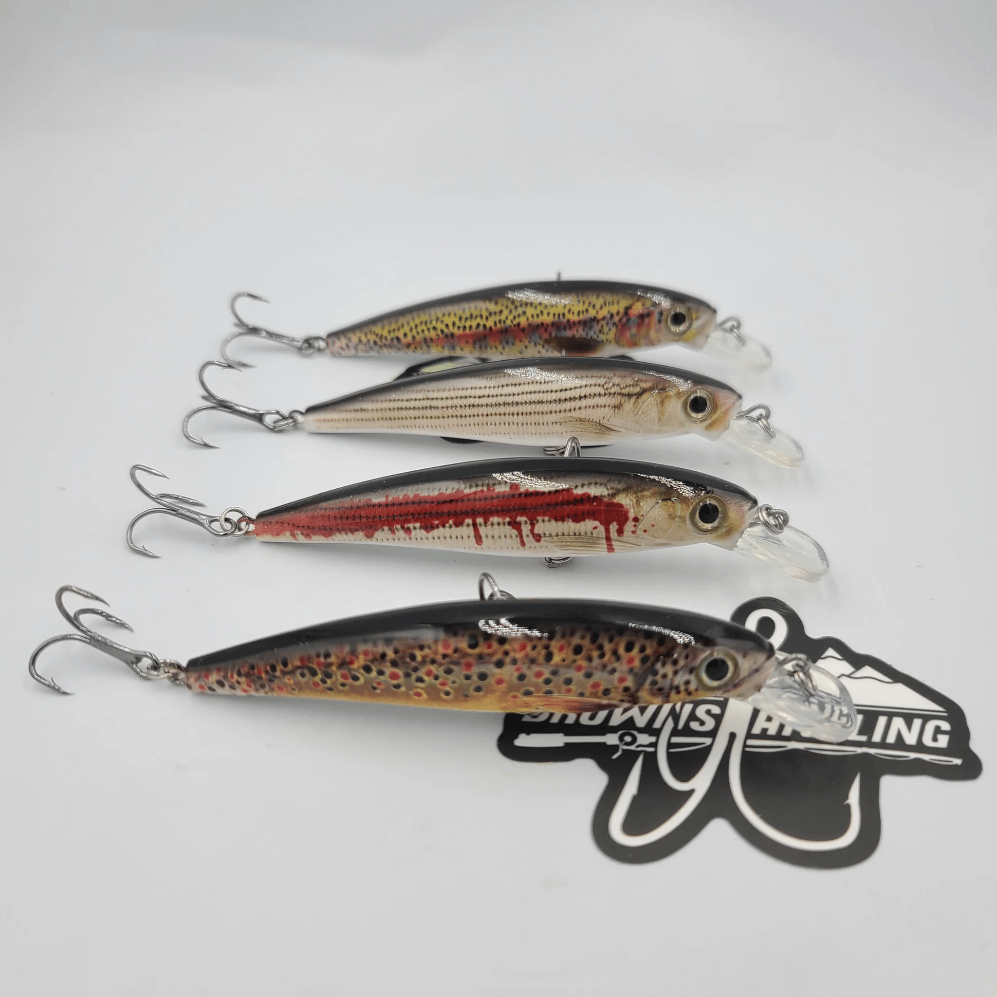 4" Floating crankbait. Diving 1.5 - 2 meters. Loud rattle with Custom lip guaranteed not to break! If this lip breaks we'll send you a free one! Great for any predatorial fish.Â