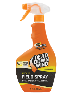 Dead Down Wind Unscented Evolve Field Spray harnesses advanced enzyme technology to eliminate odors at the source, preventing them from clinging to your skin, clothing, and gear. Its powerful formula targets and neutralizes odor-causing bacteria without using harsh biocides, making it safe for both you and the environment. Gentle on skin and effective on all types of hunting apparel, including carbon, technical, natural, and synthetic fabrics, this easy-to-use spray helps you stay scent-free and undetected in the woods.Â