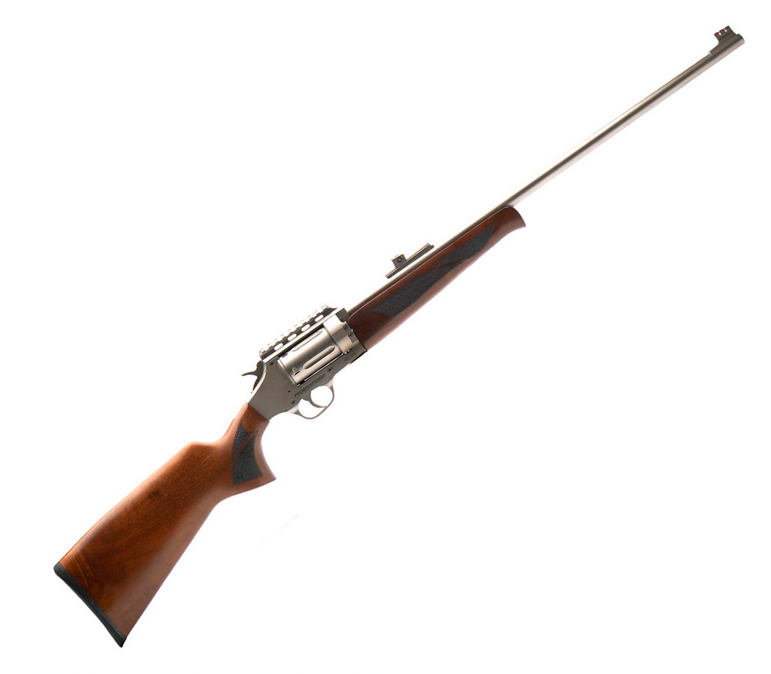 The Federation Firearms RS-410 is a .410 gauge revolver-action shotgun, engineered for versatility, portability, and unique design appeal. Manufactured in Turkey, it features a robust Turkish walnut stock, a fiber optic front sight, and an adjustable rear sight for improved accuracy.