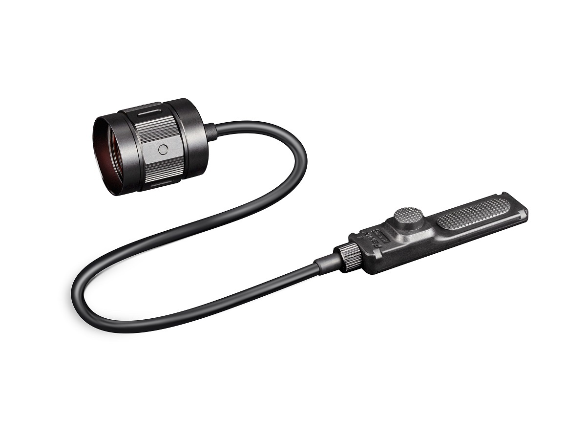 The Fenix AER-05 remote pressure switch is designed for flashlights that run with APF circuits. The tail adapter is made of A6061-T6 aluminum with type III hard-anodized and anti-abrasive finish. The dual tail switch panel includes a silent pressure pad switch and a round tactical switch, allowing easy and fast operation of momentary-on or constant-on illumination.