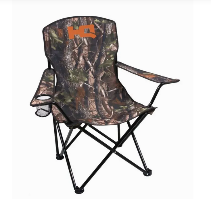Portable chair with a simple and quick set-up design, a natural recline, a mesh drink holder in the right armrest, and a sturdy frame that folds into a drawstring carrying bag with shoulder strap. This folding chair is a true chameleon - use it as a picnic chair, a camping chair, or a good ol' sitting-on-your-porch-watching-the-world-go-by chair!