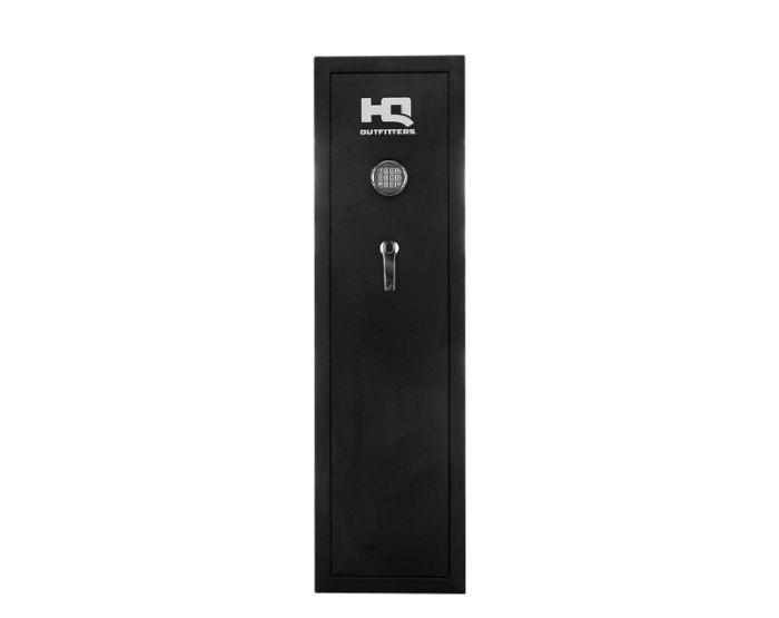 HQ Outfitter safes are an ideal option for those seeking a heavy walled steel safe. These heavy gauge steel safes feature fully carpeted interiors, patented molded barrel rests with scope standoff inserts, and a variety of locking options. This 8 gun model features adjustable shelving with 3x 25mm steel locking bolts.