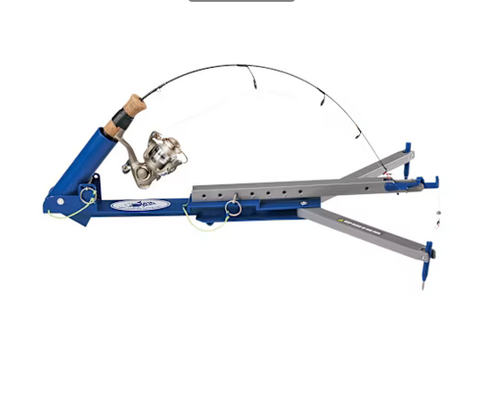 Forget having to constantly watch your rods for bites. Set the hook every time with the JawJacker. This ice-fishing tip-up watches your rod and sets the hook for you, responding to even the most sensitive bites so you can land more monsters. Adjustable to fit rod length, sensitivity and hooksetting power. Compact size when folded for easy transportation.