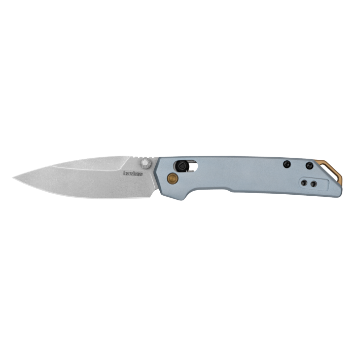 This Iridium goes mini for lightweight use and portability. A cool and casual everyday carry, it sports an ice blue handle with gold color accents. Activate with the thumb stud and experience buttery smooth deployment with KVT ball bearings. Ultra-secure DuraLock technology locks the blade in place. The D2 spear point blade is ideal for everyday cutting tasks. When your work is done, slide the lock back to safely close the Iridium and carry it with a reversible deep-carry pocket clip. If you’re looking for a light, easy EDC, go with the mini Iridium.