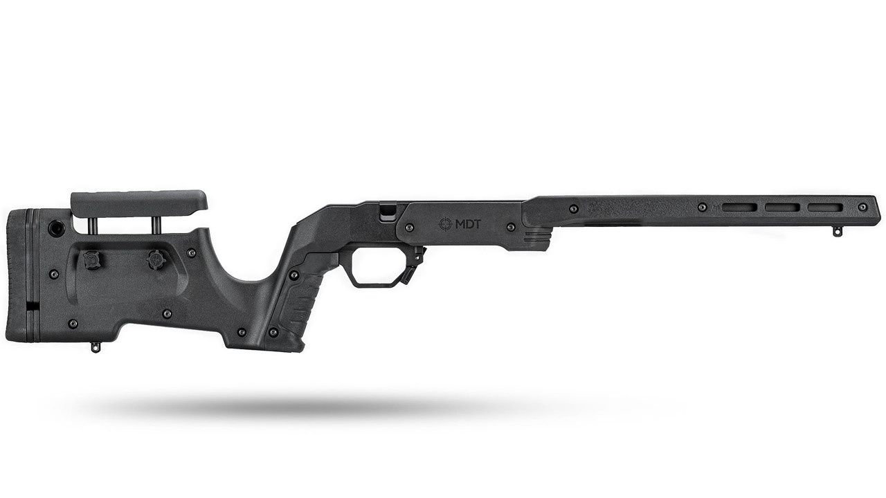 The XRS Chassis is designed for shooters that want the fit and feel of a traditional shaped rifle stock with the benefits of a modern precision rifle chassis system. Each XRS Chassis is constructed from a full-length CNC machined core of 6061 aircraft grade aluminum wearing high strength textured polymer panels for insulation from the elements. The precision aluminum V-block bedding system ensures fit and function to maximize the accuracy of any rifle action. The XRS Chassis features a replaceable over molded and textured grip system, with both an angled grip and a vertical grip included in box.
