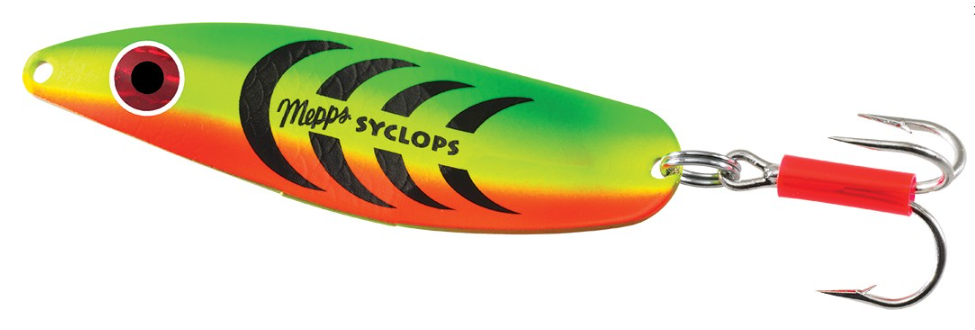 Spoon fishermen around the world are limiting out on the Mepps Syclops. Whether you fish for pike, salmon, trout, walleyes or panfish, there's a Syclops just right for you. Available in five sizes and a wide variety of proven colors, no other spoon is as versatile as the Mepps Syclops. It casts easily and can be trolled at almost any speed. It can also be vertically jigged making it ideal for ice fishing or deep-water vertical jigging.