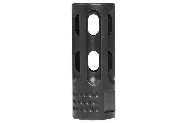 Disperses gas in 6 distinct directions. This feature aids in wide gas flow to limit recoil and muzzle climb. There are slots all the way around. Slim profile matches the contour of the M4 style AR barrel, making for that clean, sleek transition.