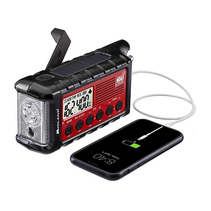 A must for emergency preparedness, the ER310 emergency weather alert crank radio keeps you informed in case of severe weather or civil emergency with multiple sustainable power options. Recharge your USB compatible devices, use the Cree LED flashlight for power outages or navigating low-light areas, be found in an emergency with the high frequency dog whistle.