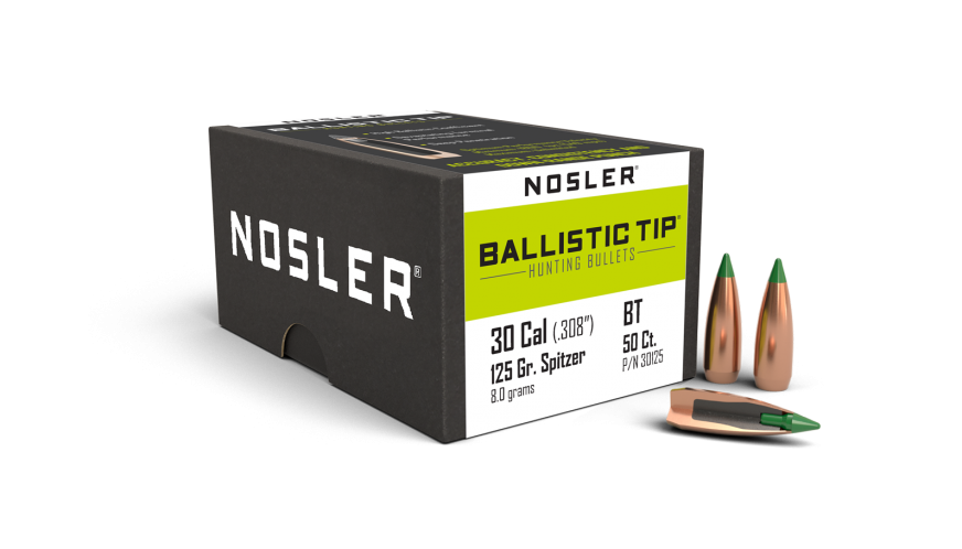 Delivering the accuracy, consistency and down range punch required for clean kills in all situations, Nosler’s Ballistic Tip® hunting bullet maximizes energy transfer for devastating performance. The aerodynamic polymer tip (color coded by caliber) initiates rapid and uniform expansion of the bullet upon impact while the fully-tapered jacket provides maximum energy transfer and optimum weight retention at all practical velocities. Equipped with a heavily jacketed base that acts as a platform for large-diameter mushrooms and a boat-tail design that enhances long-range accuracy, the Ballistic Tip® is a favorable design for reloaders targeting deer-sized game.
