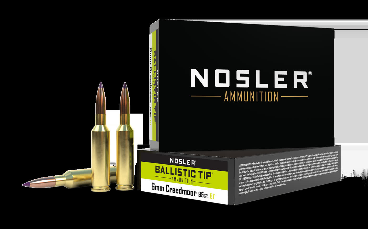 Loaded with a 95gr Spitzer Ballistic Tip® Hunting Bullet and Nosler® Premium Brass