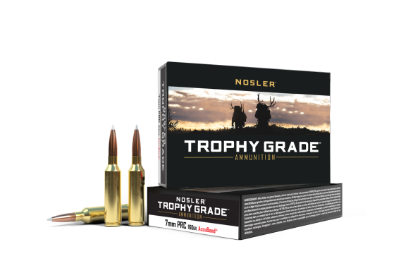Nosler Trophy Grade™ ammunition is loaded with Nosler AccuBond® bullets. The AccuBond®’s unique white polymer tip assures accuracy and smooth chambering, while the boat-tail base at the rear of the bullet acts as a platform for large-diameter mushrooms. Designed for accuracy near or far, Nosler’s Trophy Grade™ ammunition provides undeniable reliability.