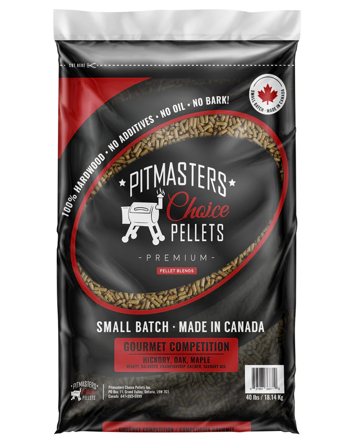Gourmet competition is a premium blend of hickory and cherry with hints of maple and oak. Robust and smoky this blend is balanced for all your smoking needs.