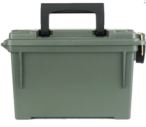 These high quality Plano ammo cans are extremely handy and great value for money. They are fully waterproof thanks to an O-ring seal running the length of the lid that is firmly secured to the container via a brass latch. Great for keeping your ammo dry and free from dirt. The can itself is built from a high grade plastic compound that is strong and wears very well. Transporting the box is easy using the comfortable heavy duty fold down handle.