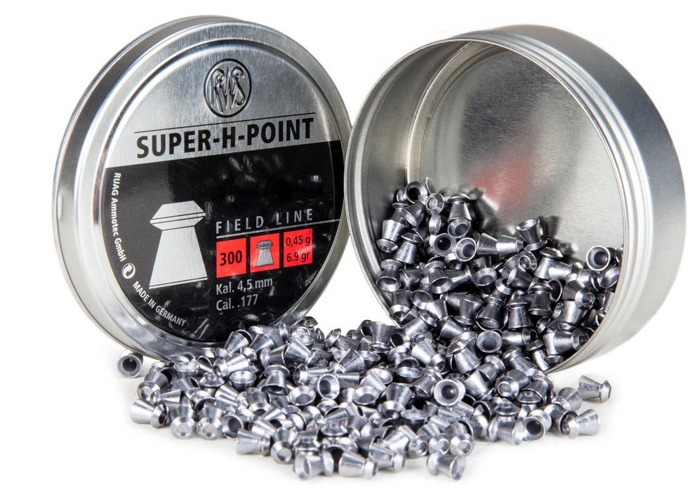 The RWS Super H Point is designed for maximum impact on your target. This lighter weight lead pellet flies fast and delivers maximum energy via its expanding hollow-point design. The Super H Point Pellet has the typical German quality features of all RWS Air Gun Pellets. The RWS Super H Point for air rifles and pistols is a great field line pellet with maximum knock down power that's great for hunting with your airgun.