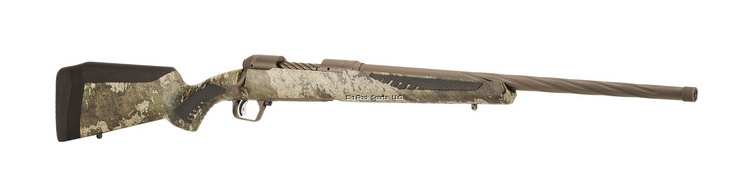 The biggest bulls. The longest shots. With the new Savage® 110 High Country, they're all within your reach. The rifle is built to maximize accuracy with a spiral-fluted barrel and bolt, as well as the Model 110 action secured three-dimensionally along its entire length within the AccuStock™ internal chassis. The AccuFit™ system lets hunters customize length-of-pull and comb height of the TrueTimber® Strata synthetic stock. Plus, the user-adjustable AccuTrigger™ offers a crisp, clean pull critical for making precise shots at extreme distances. The low-friction, coyote brown PVD coating on the barrel, receiver and other critical parts is harder than competing finishes and protects against corrosion and heat. At just 2-4 microns thick, the coating does not interfere with the rifle's tight tolerances
