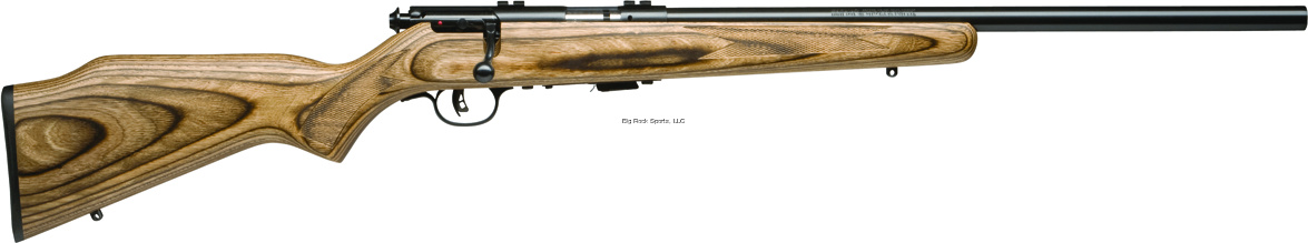 21" heavy barrel that is precision button rifled and includes a recessed target style muzzle. The gray laminated hardwood stock is cut checkered and provides a firm foundation for the machined blue steel barreled action. Offered in 22 LR with a 5-shot clip and Weaver®-style bases included. Weighs 6.5lbs