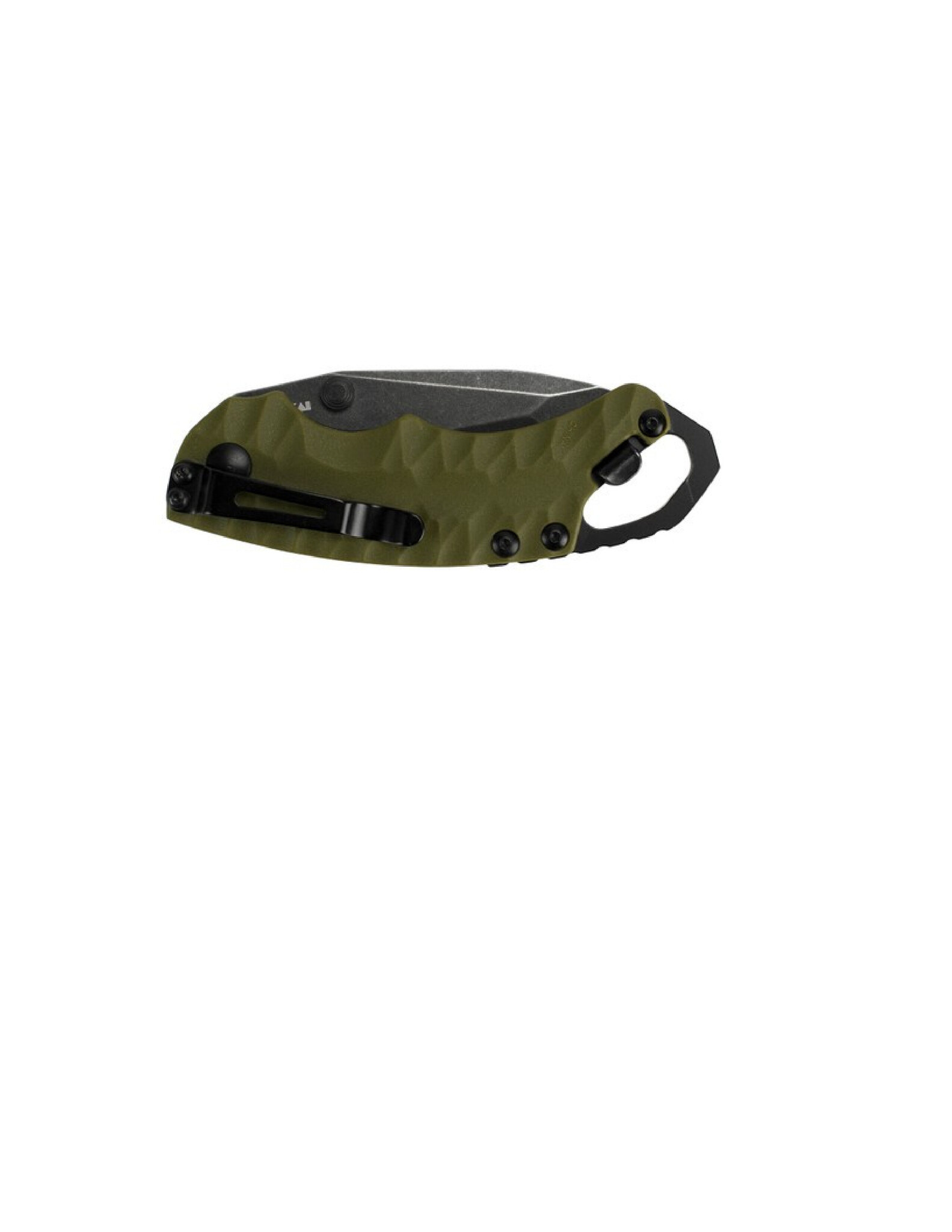 The Shuffle II goes bigger and brawnier. It offers a bigger blade and a longer handle, yet it has the same multifunctional flexibility and value pricing that made the Kershaw Shuffle so popular. But the Shuffle II’s look is very different from the Shuffle. With a tanto blade, strongly textured handle, and BlackWash blade finish, the Shuffle II has a very substantial look and feel. It’s sturdy glass-filled nylon handle in attractive olive green, the Shuffle II is ready to handle any task indoors, at work, or in the out of doors.