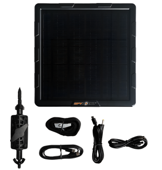 The SPLB-10 is compatible with all SPYPOINT cameras and, like all solar panels, performs best in full sun and when the panel is kept clear of dirt and debris.