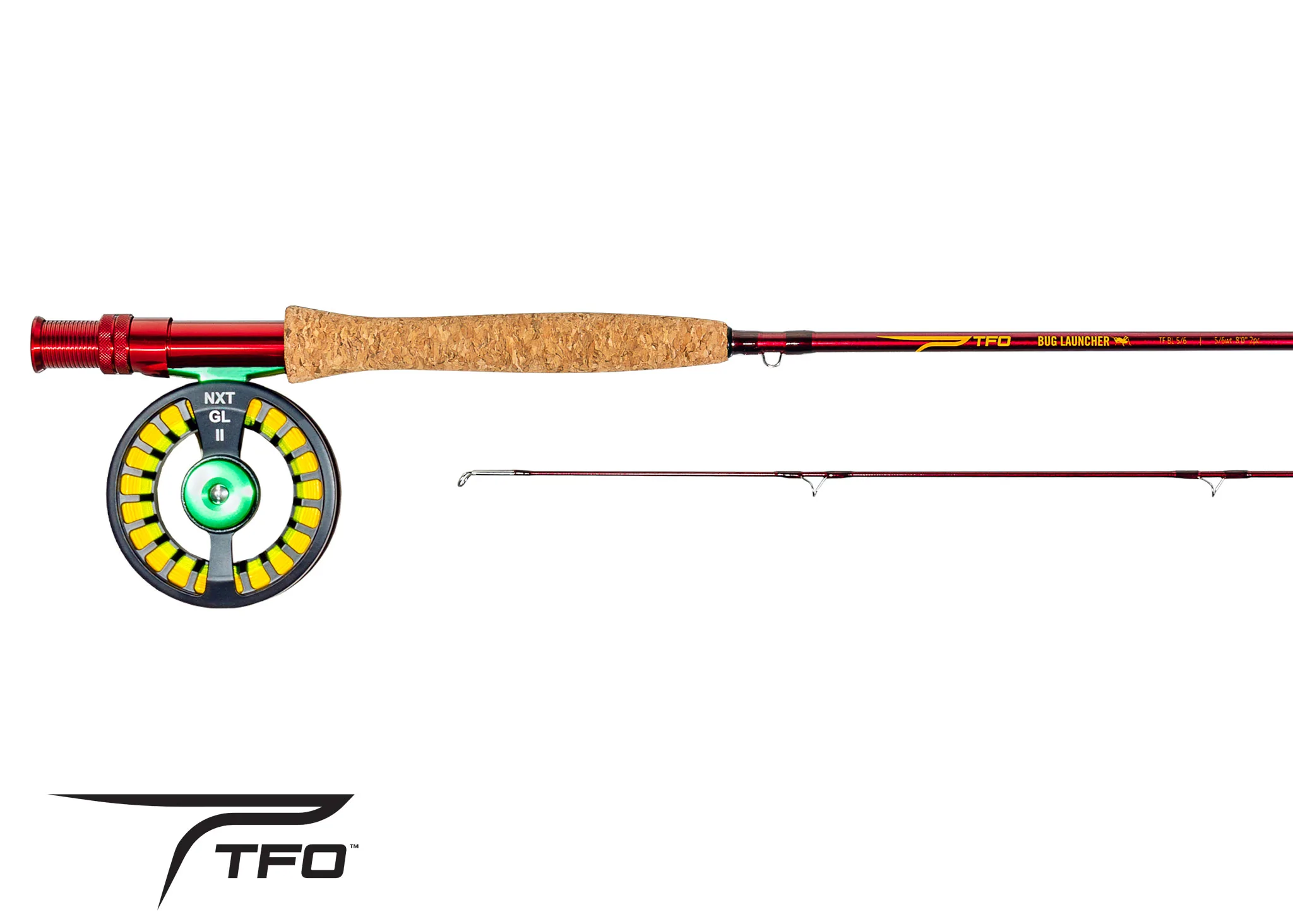 Who inspired you to pick up a fly rod? Chances are it was a parent, your Ïfavorite uncle or a close friend that helped you throw your first tailing loop with great pride. You probably landed your first fish on a hand-me-down rod with a missing guide and a doctored tip. It is time for you to pass your knowledge onto others, Temple Fork Outfitters has the perfect rod to hand down; introducing the Bug Launcher series of fly rod kits. Two-piece rods paired with NXT GL reels that are spooled with fly lines backing and a leader, just tie a fly on and let the fun begin.