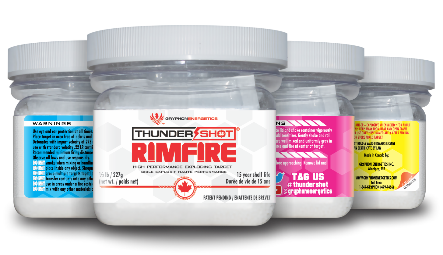 The primary feature of all THUNDERSHOT® targets, and what has made it the number-one selling exploding target in Canada. A half pound of our specially engineered Rimfire formula is nearly as powerful as a full pound of our Centerfire formula.