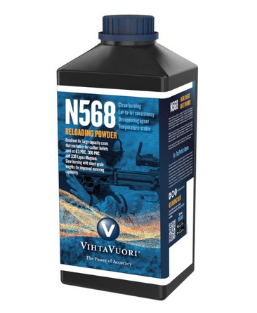 Vihtavuori N568 is the perfect choice for today’s most popular large capacity cartridges, including 6.5 PRC, .300 PRC, .338 Lapua Magnum, and an assortment of classic belted magnums such as 7mm Remington Magnum and .300 Winchester Magnum.
