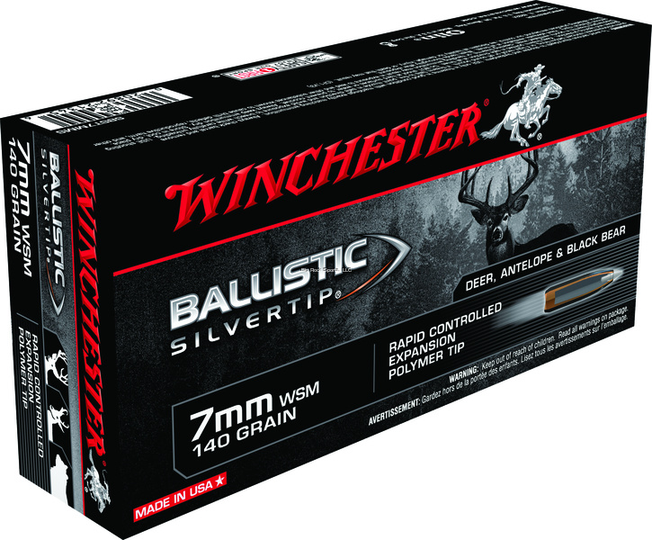 Winchester's Ballistic SilverTip is a polymer tipped bullet with alloyed lead core, contoured jacket, lubalox (black oxide) coating that produces rapid controlled expansion with massive knockdown and moderate penetration. 20 rounds per box.